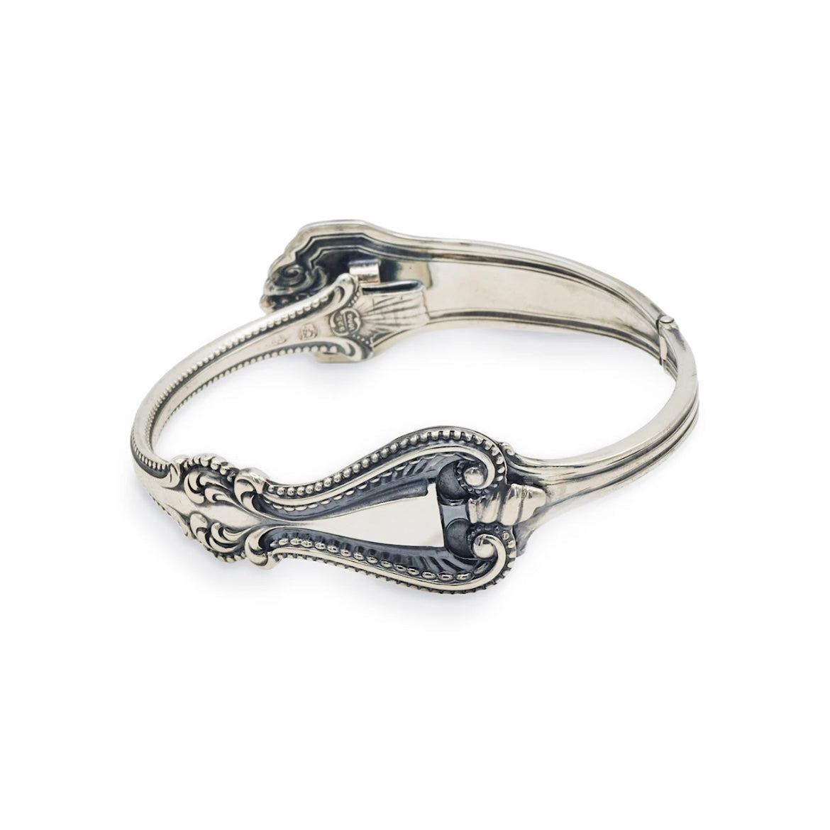 Made with vintage silver spoons and amber. Please note that each piece is One-of-a-kind, and therefore may have original minor scratches and distinctive aging characteristics. Thank you for your understanding.