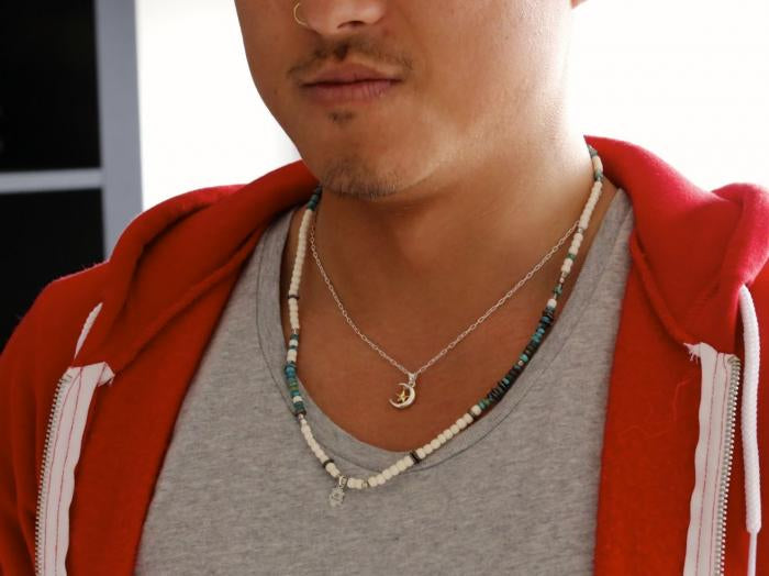 Material: Bone, Turquoise, Brass Beads & Silver 925 Charm