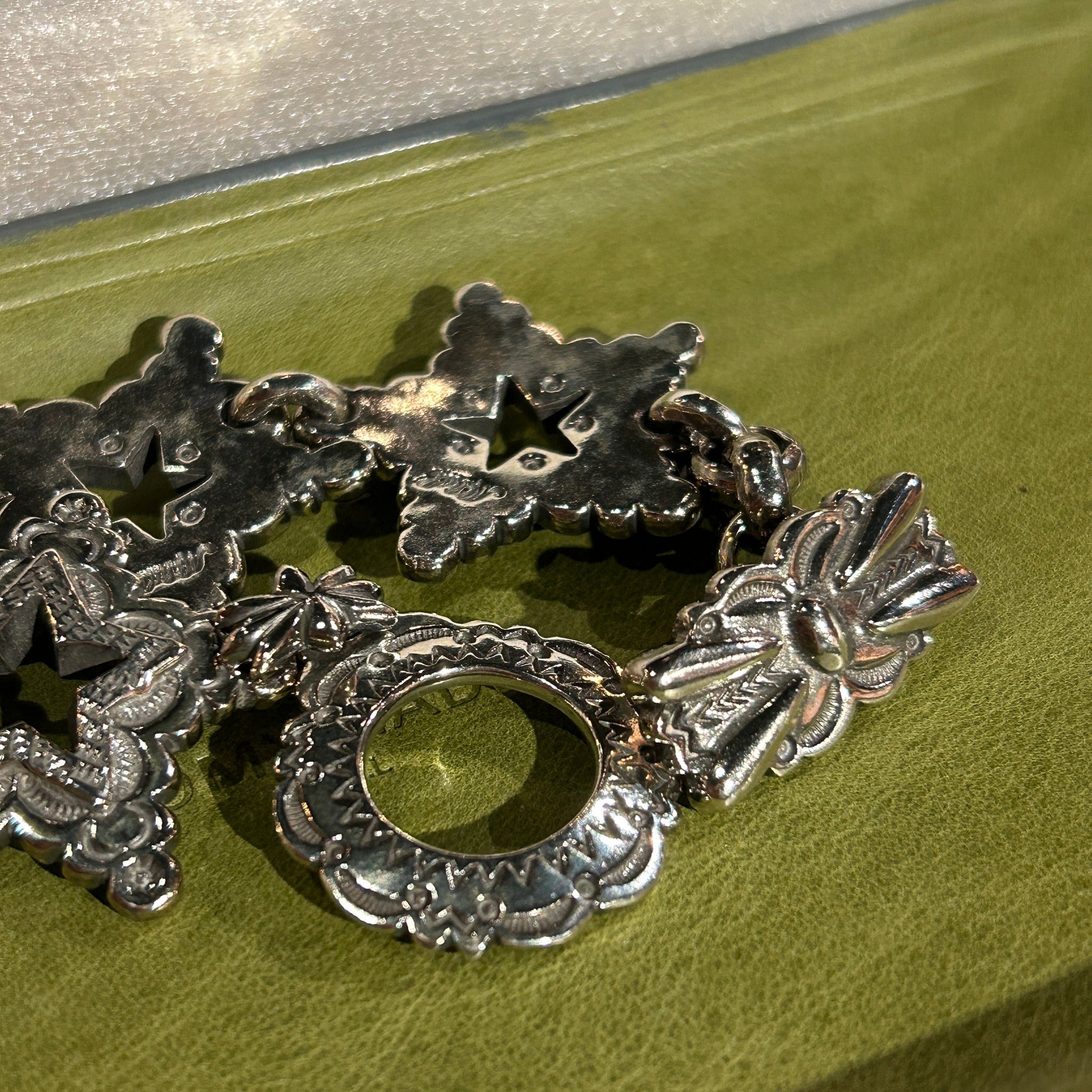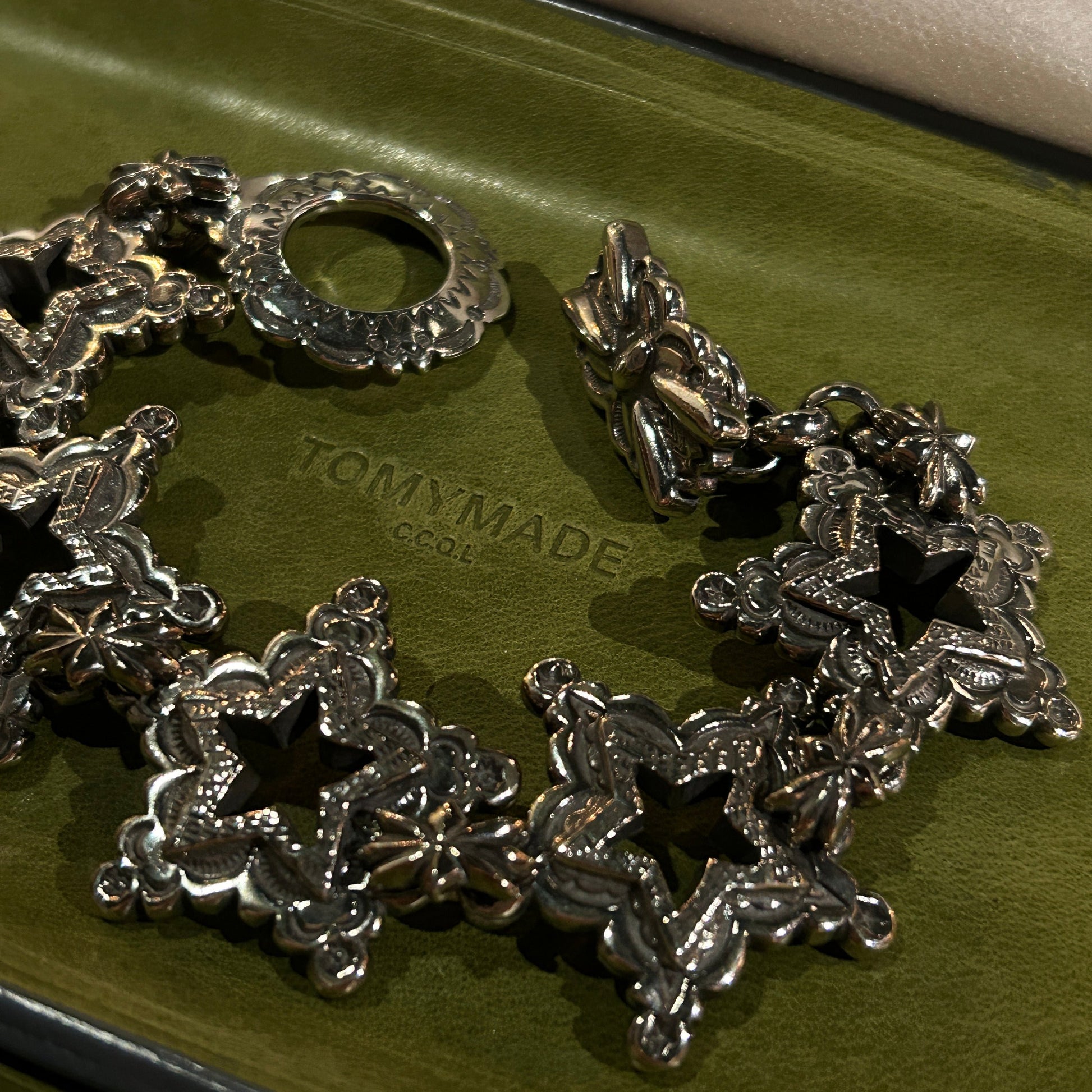 - Heavy duty engraved silver clasps