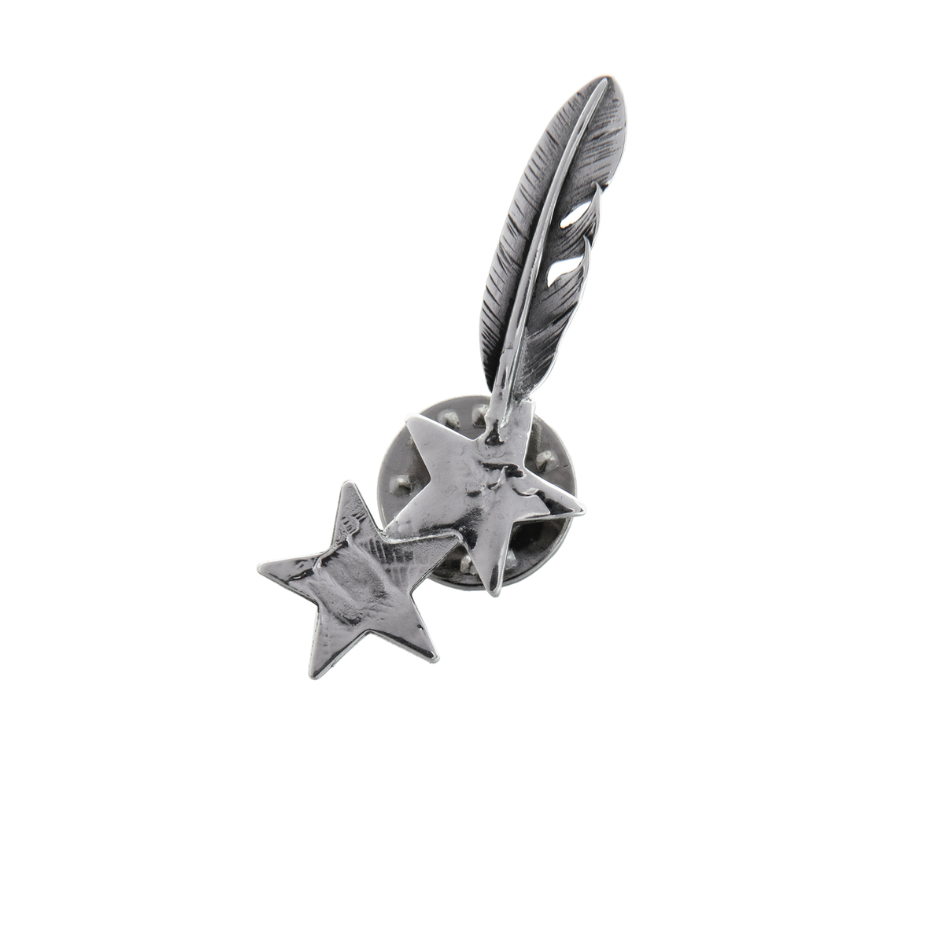 This pin is designed with two stars and a feather, handmade of 900 silver from American vintage morgan coin.