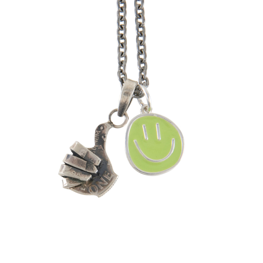 [North Works] Pastel Smiley Pendant Necklace- Silver vintage coin handmade