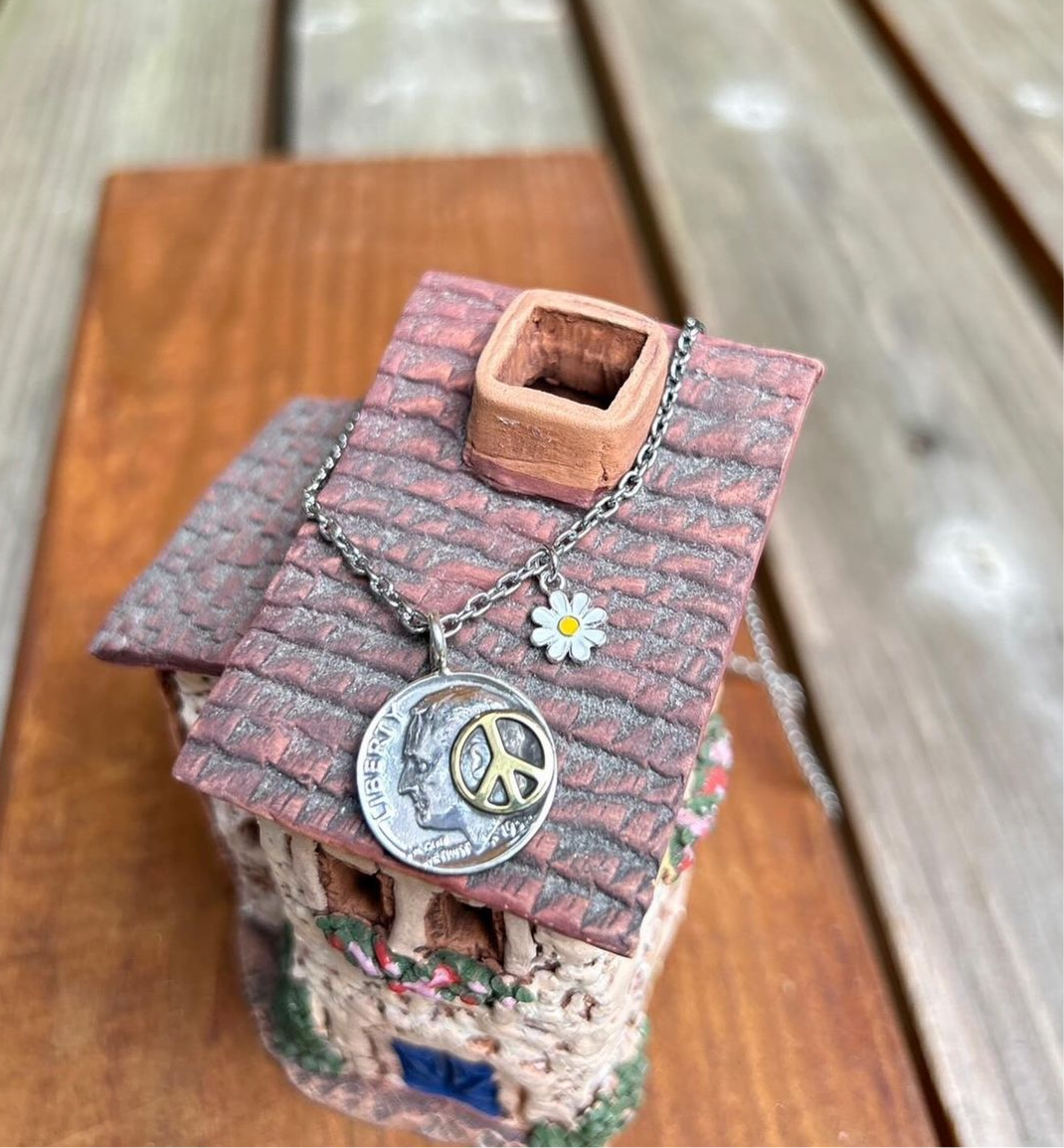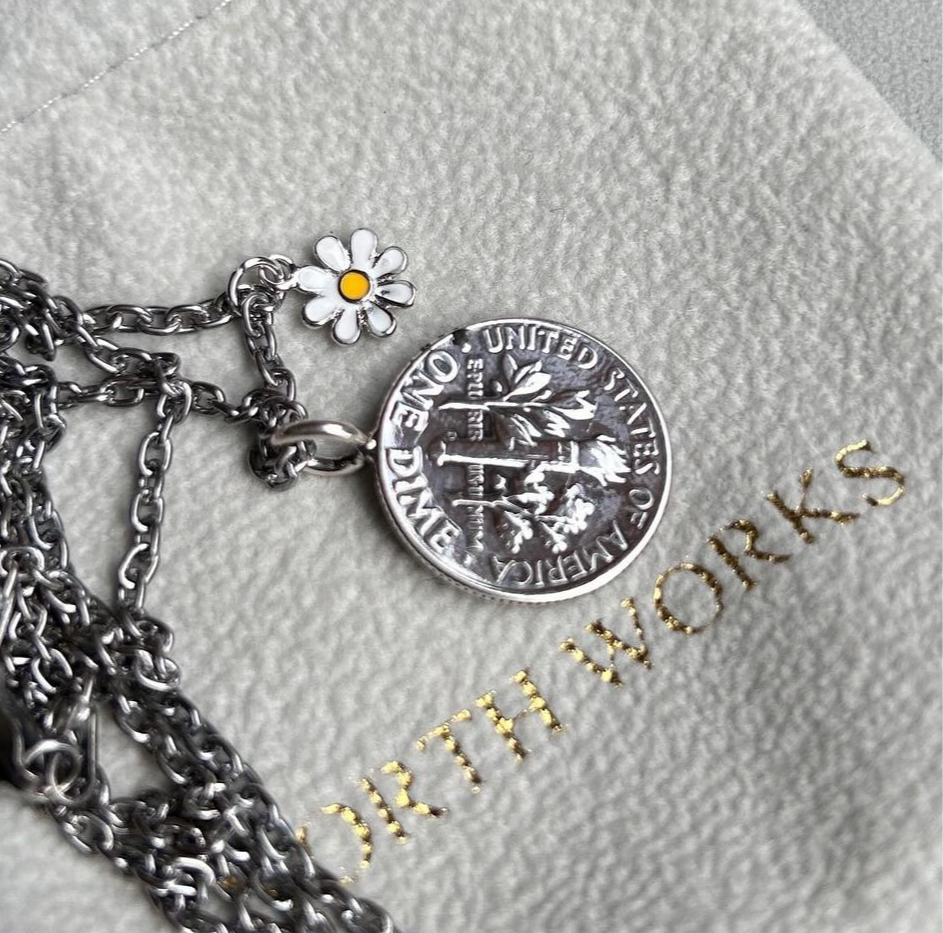 [North Works] Daisy Smiley Necklace / Pendant- 10¢Silver vintage coin handmade Necklace
